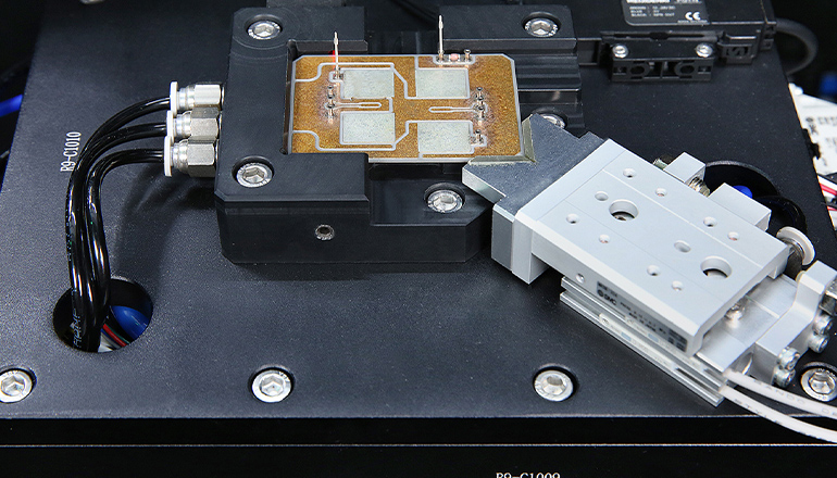·本体采用大理石搭载直线电机一体化设计,实现μ级高精度高速度生产弹夹式DBC上下料,满足半导体行业的高品质生产需求